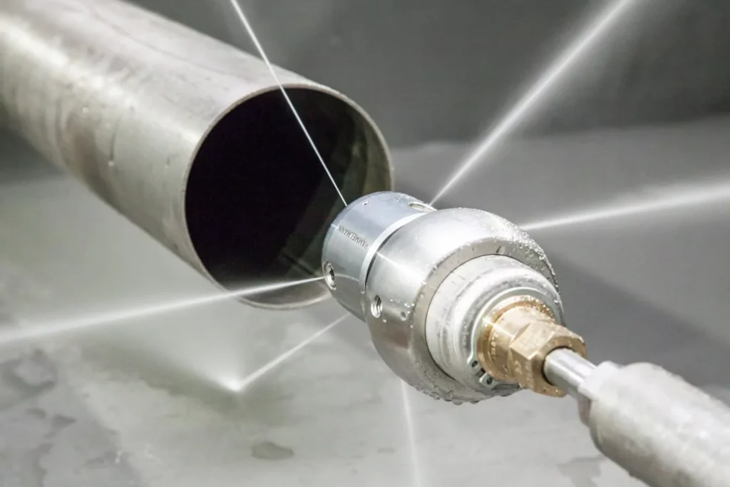 Це найбільш сучасний та ефективний спосіб очищення, при якому використовується вода, що подається під високим тиском. Потужні струмені води повністю видаляють зі стін труб жир, вапняний наліт та інші відкладення, повертаючи системі її проектну пропускну здатність. Таке прочищення каналізації гарантує повну безпеку і цілісність з’єднань, що особливо важливо для старих або пластикових трубопроводів.